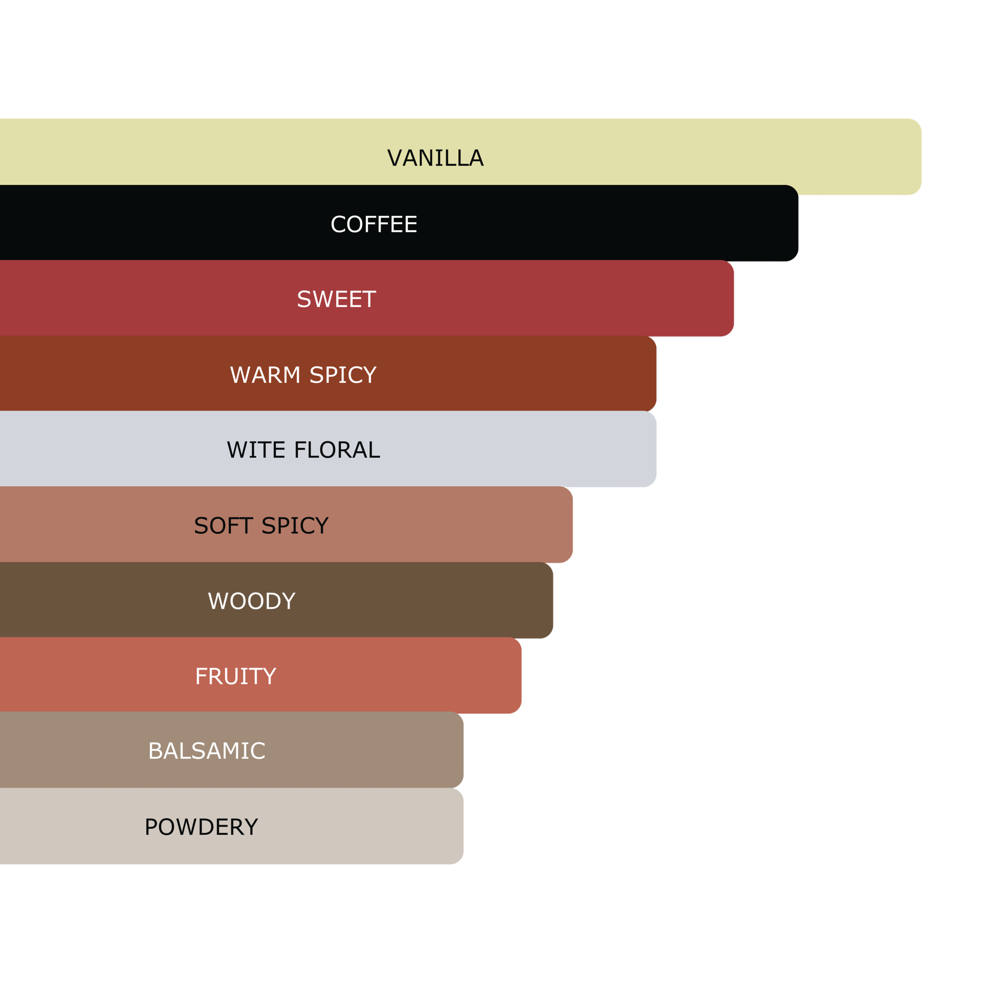Finally, it lingers on a deep base of Madagascar Vanilla, Bourbon Vanilla, Vanilla Absolute, Coffee, Vanilla Orchid and Patchouli—warm, sensual, and unforgettable.