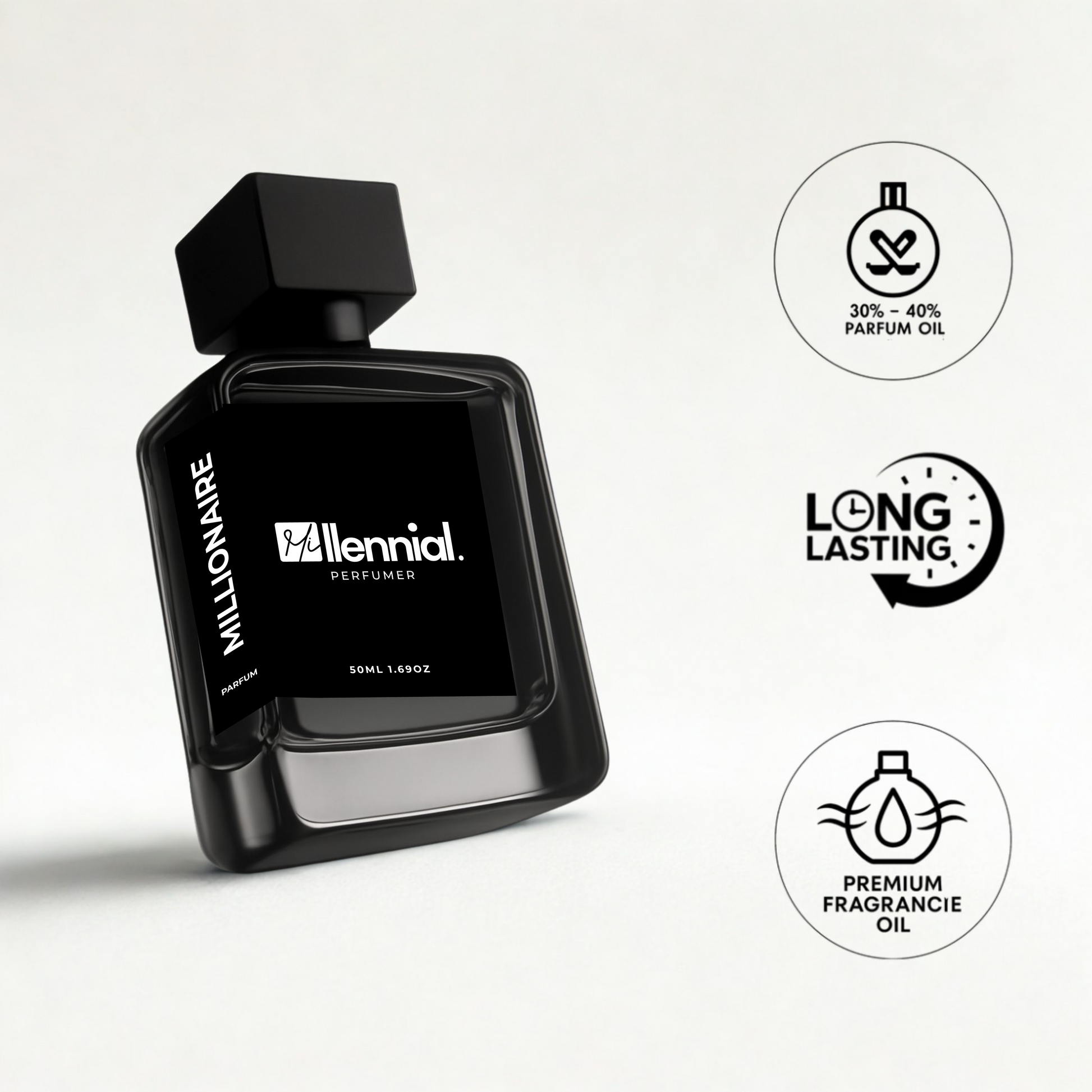 At Millennial Perfumer, we blend luxury, quality, and accessibility. Our Extrait de Parfum fragrances ensure long-lasting scent and strong projection. Sourced from global fragrance giants like Givaudan and IFF, each perfume is crafted with the finest materials and a personal touch, helping you express yourself with confidence all day long.